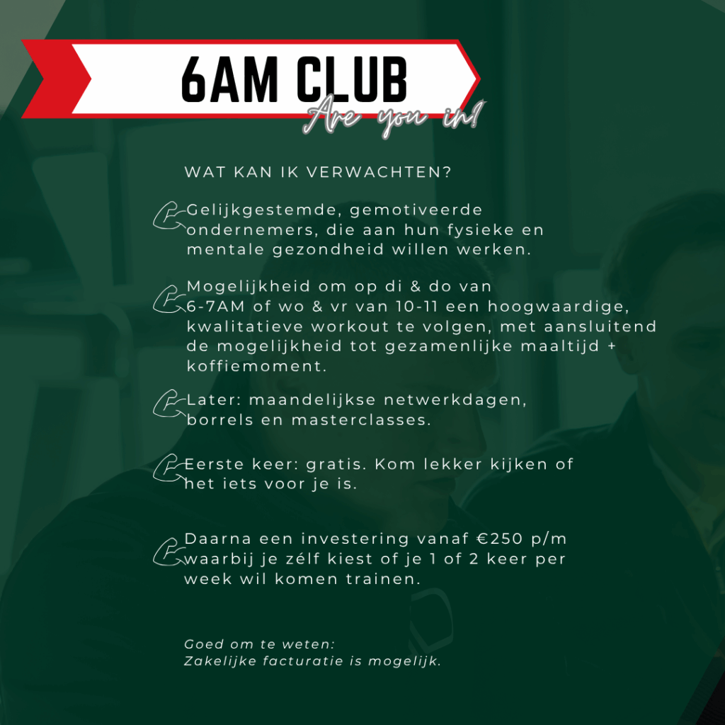 Vul hieronder vrijblijvend je gegevens in en ontvang meer informatie over de 6 AM club.